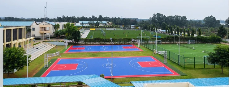 Facilities: football, cricket, basketball, badminton, tennis, table tennis, handball, throwball, karate, yoga, skating, billiard, and squash. Swimming and horse riding are outsourced.